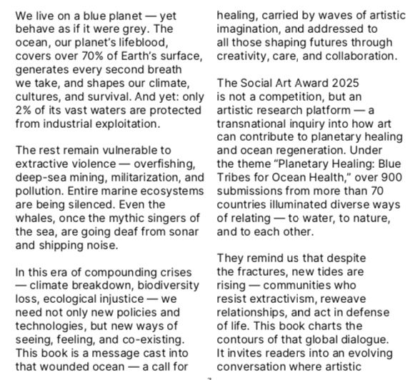 The professional jury panel is currently reviewing and selecting the TOP 100 entries that will be featured in the official Social Art Award 2025 book. In parallel, the two public voting winners will move forward as wildcards into the final jury round.